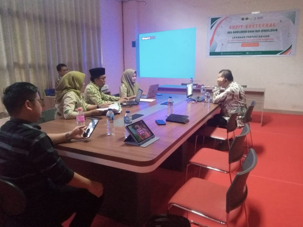 Manado, 26 November 2024 – Tim Auditor sertifikasi ISO 9001:2015 dan ISO 21001:2018 untuk pelayanan perpustakaan di UPT Perpustakaan IAIN Manado telah selesai dilaksanakan dengan sukses. Proses Audit yang dipimpin oleh Ir. Sholichin Agung Darmawan, MBA., RPA., berlangsung di Aula UPT Perpustakaan.