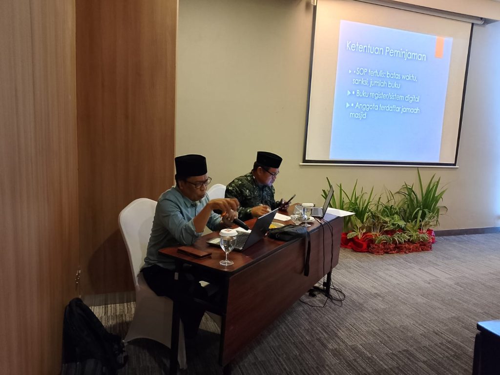 Materi yang dibahas meliputi standar operasional pengelolaan koleksi, sistem pencatatan digital, layanan literasi bagi jamaah, serta strategi menjadikan perpustakaan masjid sebagai ruang publik yang inklusif. Selain itu, peserta juga dilatih membuat database anggota dan sistem peminjaman berbasis register digital untuk meningkatkan efisiensi layanan.