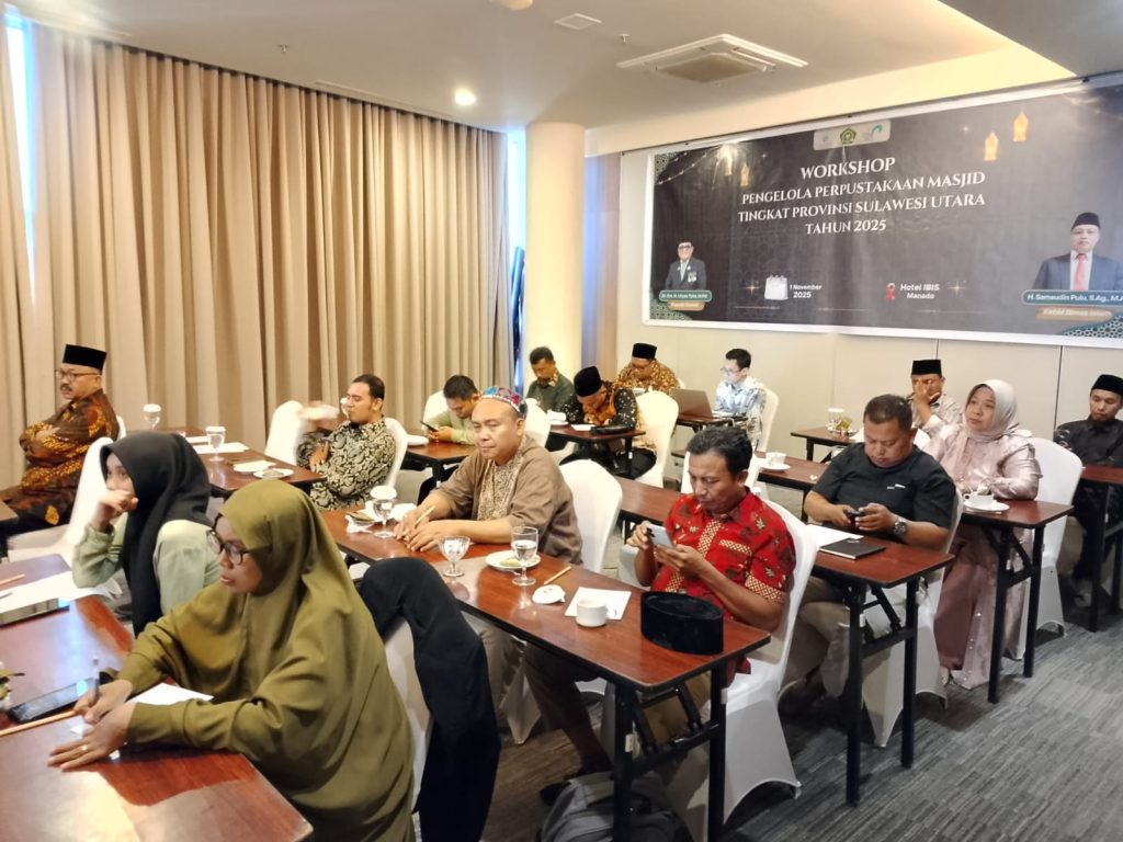 Manado, 1 November 2025 — Dalam upaya memperkuat peran masjid sebagai pusat literasi dan pembinaan umat, Kantor Wilayah Kementerian Agama Provinsi Sulawesi Utara menggelar Workshop Pengelola Perpustakaan Masjid Tingkat Provinsi Sulawesi Utara Tahun 2025. Kegiatan ini dilaksanakan di Hotel Ibis Manado dan dihadiri oleh para pengelola perpustakaan masjid dari berbagai kabupaten dan kota se-Sulawesi Utara.
